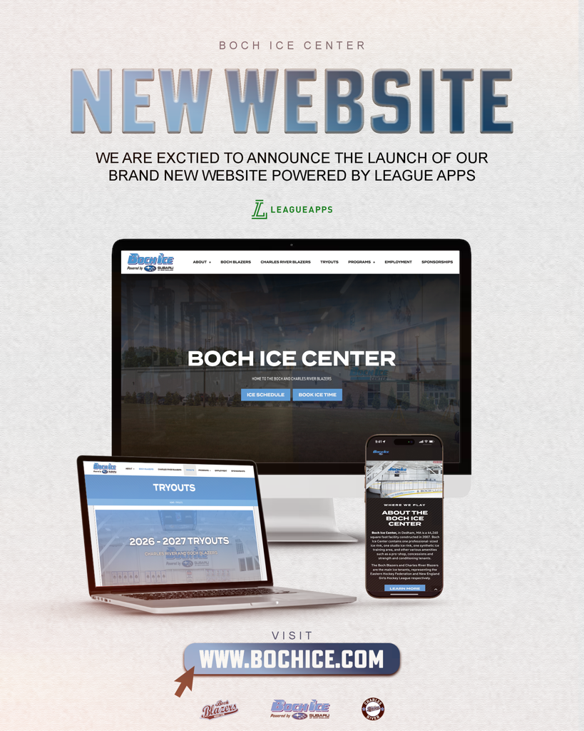 The Boch Blazers & Charles River Blazers are metro Boston’s premier hockey development program. Our teams skate out of the Boch Ice Center in Dedham, MA, conveniently located off Route 95.